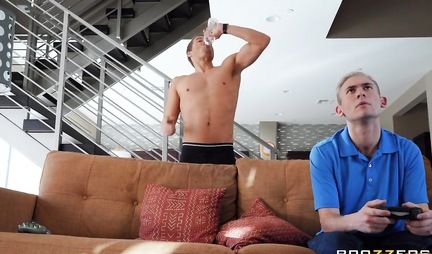 Бриджит Би не только довольно таки зачетная мамашка, которая смотрит со своим наследником футбол, но реально всегда готова приветить и ублажить всех без исключения камрадов чувака, особенно если у тех здоровенный член или другой цвет кожи. Вот и сегодня дамочка прется сразу с парой товарищей во время межрасового группового порно с двойным проникновением и она весьма довольна подобным способом времяпрепровождения.