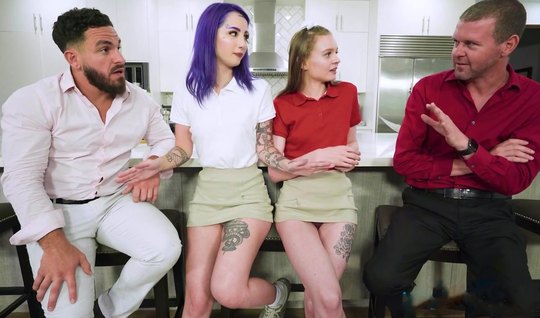 Если у двух мужиков-приятелей бомбит пукан от молоденьких падчериц друг друга, то стоит чувакам подумать за то кто будет учить этих молодых цыпочек сексу. Вот приятели и меняются девицами, чтобы встретиться на свободной хате и вдоволь насладиться групповым порно в режиме свинга со всеми вытекающими и втекающими моментами.