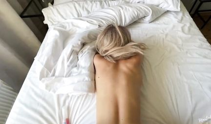 Блондинка с шикарной попкой трахается раком с приятелем