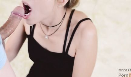 Блондинка в черном белье открыла ротик для домашнего минета на камеру и камшота в финале
