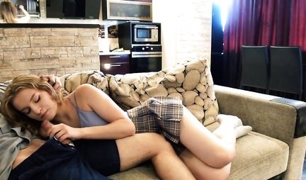Девка в короткой юбке трахается с парнем сестры в домашнем порно