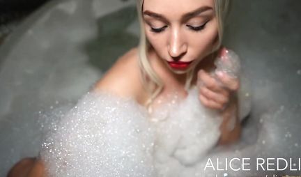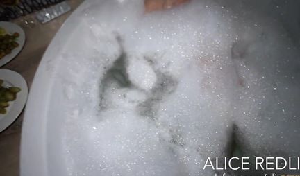 Ну, вообще-то ванная предназначена для того, чтобы в ней купаться, но этот товарищ натуральный новатор в любовных делах и когда его любимая блондинка моет письку и прочие прелести, он подгоняет чиксе винишко с подмешанным туда портвейном. Эффект от подобного коктейля фееричный потому что спустя некоторое время девулька сама лезет на шишку пацана. Так что берите на заметку!