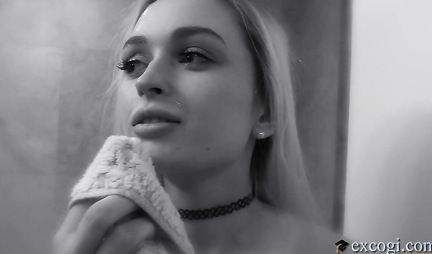 Худая блондинка раздвигает ноги и светит киской на кастинге