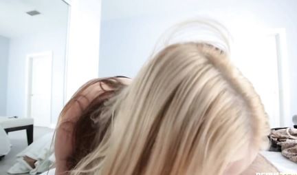 Мамка с белыми волосами раздвигает свои стройные ноги для секса от первого лица
