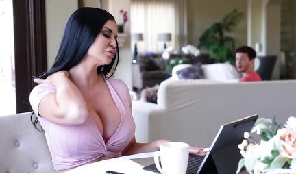 Грудастая мачеха трудится на удаленке и ее большие груди просто не могут не привлекать внимания пасынка, только что вернувшегося с учебы. Мечтая подобраться поближе к буферам, тот предлагает милфе сделать массаж и дамочка так возбуждается что уже не прочь сделать минет и даже попробовать секс. Все получается замечательно и бурный домашний секс - лучший способ слегка расслабиться и отдохнуть в конце трудового дня!