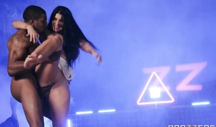 Матюрка из B*****rs круто наяривает дырочками по огромному члену негра и кончает