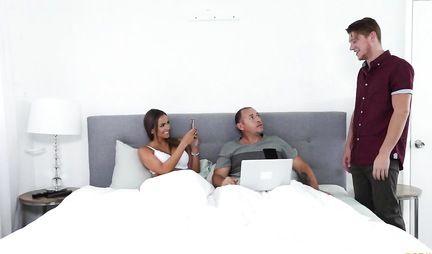 Если муж уже на самом деле полностью лысый и к тому же одержим игрой в такую популярную игру как Дота, то не стоит удивляться, что сердце и вагинальную дырочку его жены быстро покоряет приходящий специалист по ремонту ноутбуков. Одной рукой он ремонтирует компьютер мужу, а второй дрючит его молодую жену как бы необычно это ни звучало. Вот такие на свете бывают самородки!