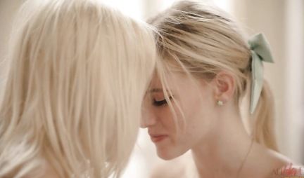 Молоденькая блондинка соблазнила подругу на лесбийский секс
