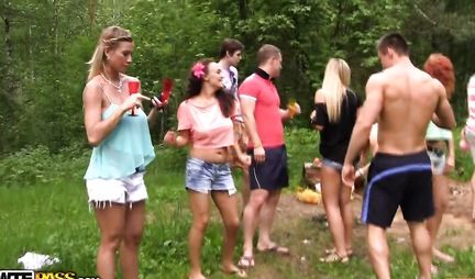На природе русские девушки с парнями устроили оргию и получили много кайфа