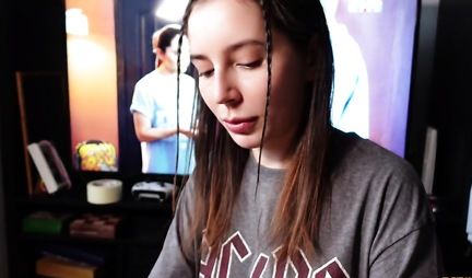 Народная молва очень авторитетно утверждает что кто не любит АйСиДиСи - тот любитель нашей писи! ну а поскольку на этой русской девушке майка с подобной абревиатурой, то становятся понятны сексуальные пристрастия ее друга. Впрочем тот больше прется от эротичной кулинарии любимой девушки и от того что она позволяет отжарить себя в дупло почти всегда и сегодня - не исключение...