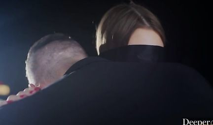 Парень завязал глаза молоденькой телочке и оттрахал ее в ночном клубе