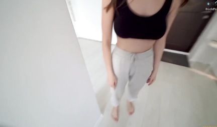 Парень жарит киску своей спортивной телочки от первого лица
