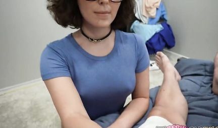 Вообще я не люблю свою сестру, потому что она стерва и постоянно подкалывает меня что у меня нет девушки и я все время дрочу. Но сегодня в гостях у сеструхи весьма симпатичная подруга в очках и с кудряшками. Чисто случайно она подглядывает за мной в туалете и с первого взгляда влюбляется в пенис. Сделать с ней шпили-вили получается без проблем и теперь у меня есть подруга и я не дрочу на голых женщин в интернете... потому есть кого жарить.