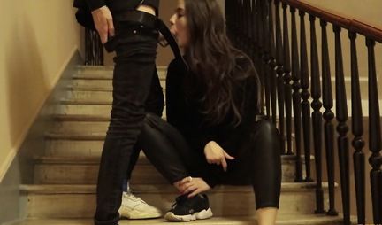 Все жители мегаполисов знают что лучший секс на лестнице в парадной. Если выше ростом чем подруга, можно можно опуститься на одну ступеньку, а если ниже - подняться. Ну а если не можешь трахаться - сказать ой смотри - кто-то идет!... Примерно также делает и эта пара студентов, плюс экстрим делают последующий секс в квартире просто феноменальным.