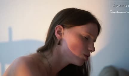 Русская девушка с небольшими сиськами сосет пикаперу
