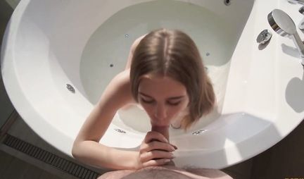 Думается идея о том, чтобы установить джакузи прямо перед большим окном была не самой лучшей, хотя с другой стороны этаж здесь хрен знает какой, а с другой если девушка красива, то почему бы это и не показать кому-нибудь помимо мужа, который каждый раз навещая женушку во время помывки обязательно вставляет ей член в какую-нибудь дырку. И не откажешь - так записано в новой Конституции.