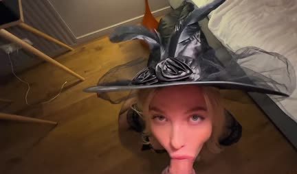 Красивая девушка Стейси Ангел готовить костюм к Хэллоуину, а ее парень как назло хочет секса. Отказывать любимому это моветон, а потому блондинка старательно сосет большой мужской пенис. Затем блондиночка растараканивается на кровати, а чувак жучит ее в классической позиции, затем в догги-стайл. И лишь после того как любимая облизывает яйца, хлопец кончает ей на лицо. Вот, оказывается, какие ненасытные любовницы-ведьмы!