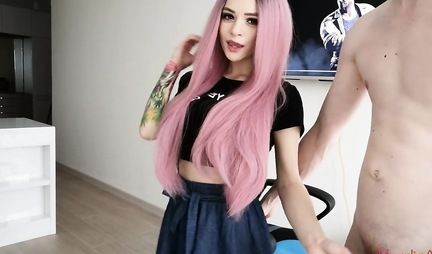 Играть в Мортал Комбат безусловно весьма похвальное занятие для симпатичной девушки с красными волосами, но все равно это не ее. Гораздо больше девице нравится, когда любимый друг возвращается с работы и заставляет ту раздвигать булки и подставлять сдадкую дырку для бурного и неудержимого секса. А вот это правильно - пусть лучше девица будет зависима от мужского конца, чем станет игроманкой.