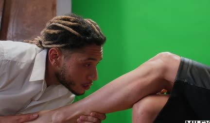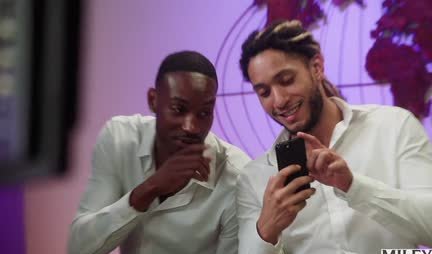 Зрелая баба с классными сиськами ебется сразу с двумя неграми